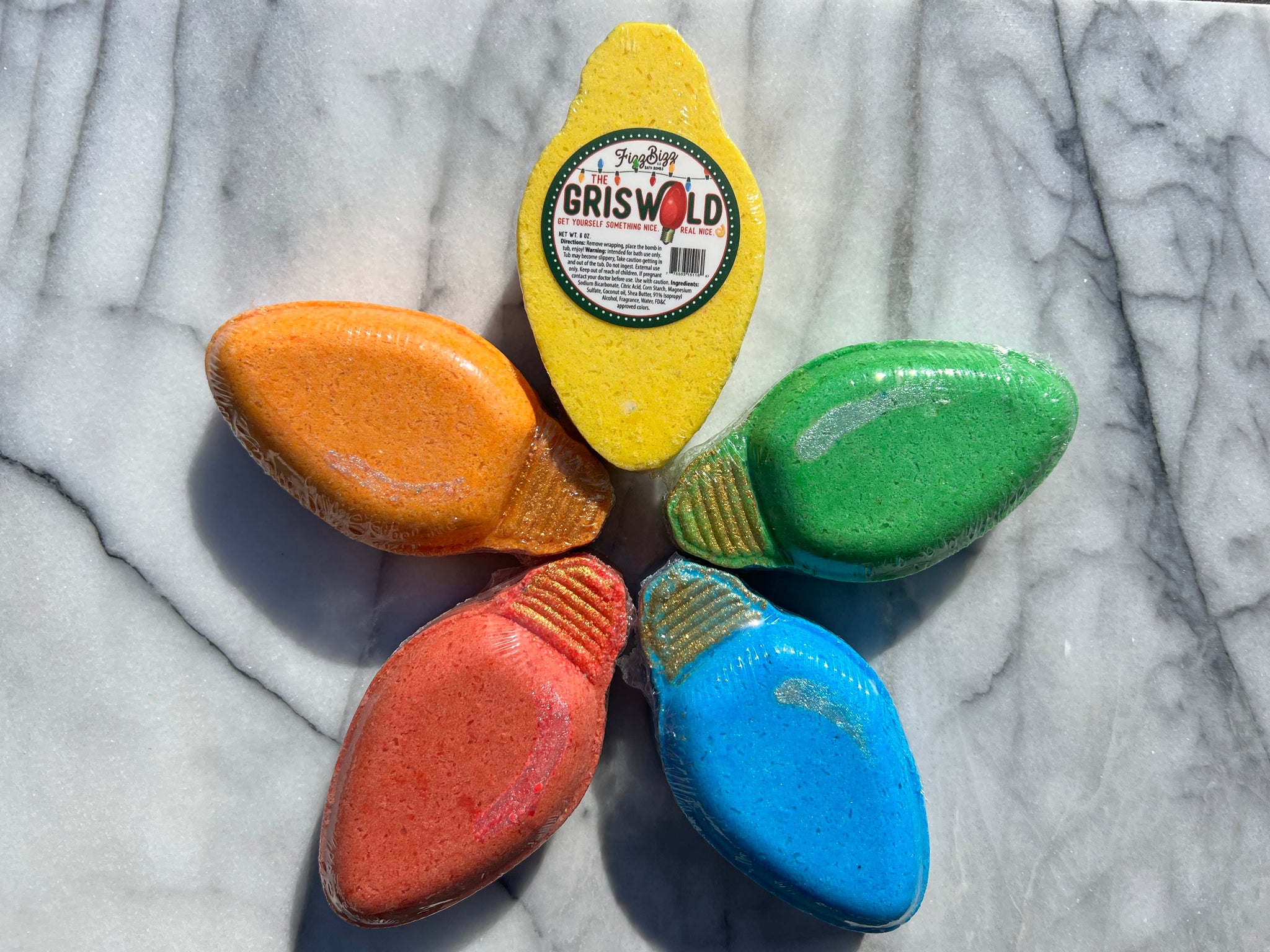 Get yourself something real nice!! Try these Griswold Christmas light bulb bath bombs. Scented with our popular Monkey Farts scent. They come in 5 different colors. Each order will receive one Blue, Orange, Red, Green, and Yellow.