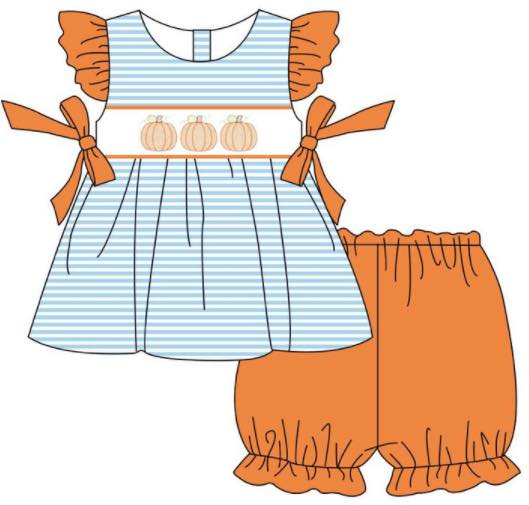 Girl Pumpkin Short Set